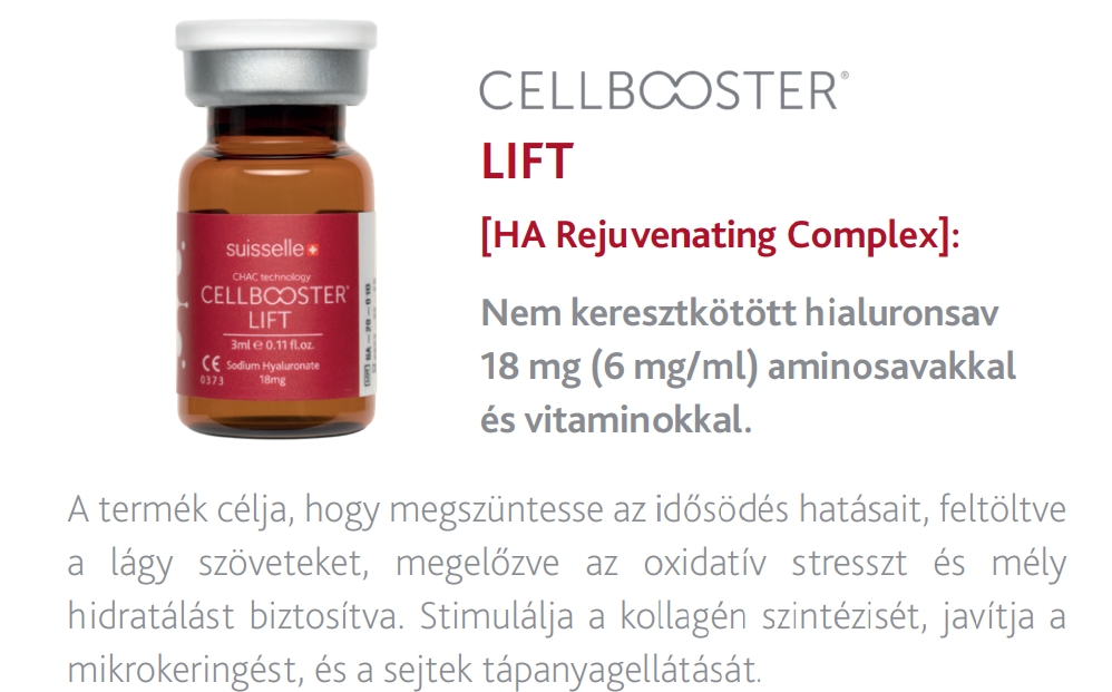 A CELLBOOSTER komplexek előnye a testre szabott formula, amely javítja a molekuláris stabilitást és észrevehetően hosszabb ideig tartó eredményt biztosít.