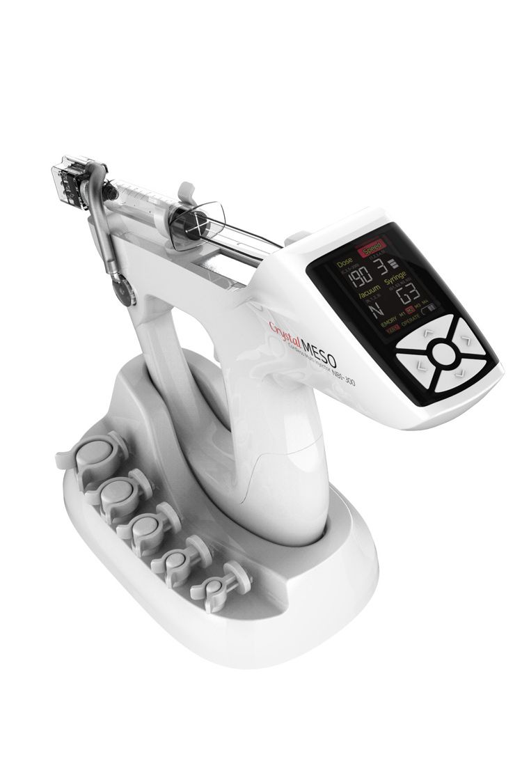 A komplexek bejuttatása történhet fecskendővel, de rendelőmben Crystal Meso pisztollyal tötrénő kezelésre is lehetőség van, mely pontosabb hatóanyag bejuttatást tesz lehetővé.