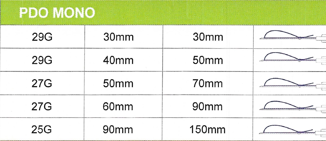 A fogazott szálak behúzásával csökkenthető az arc oldalsó részének lógása, az áll vonala egyenletesebbé tehető. Használjuk a nyak feszesítésére és a szemöldök emelésére is. Oldalanként 4-6-8 szál kerül bevezetésre.